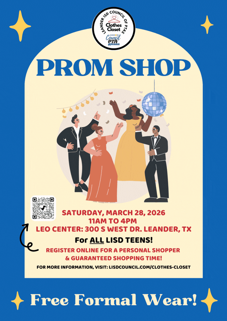 💪 Leander ISD PTA Clothes Closet is your solution for free, confidence-boosting prom attire on Saturday, March 28 at the LEO Center in Leander.