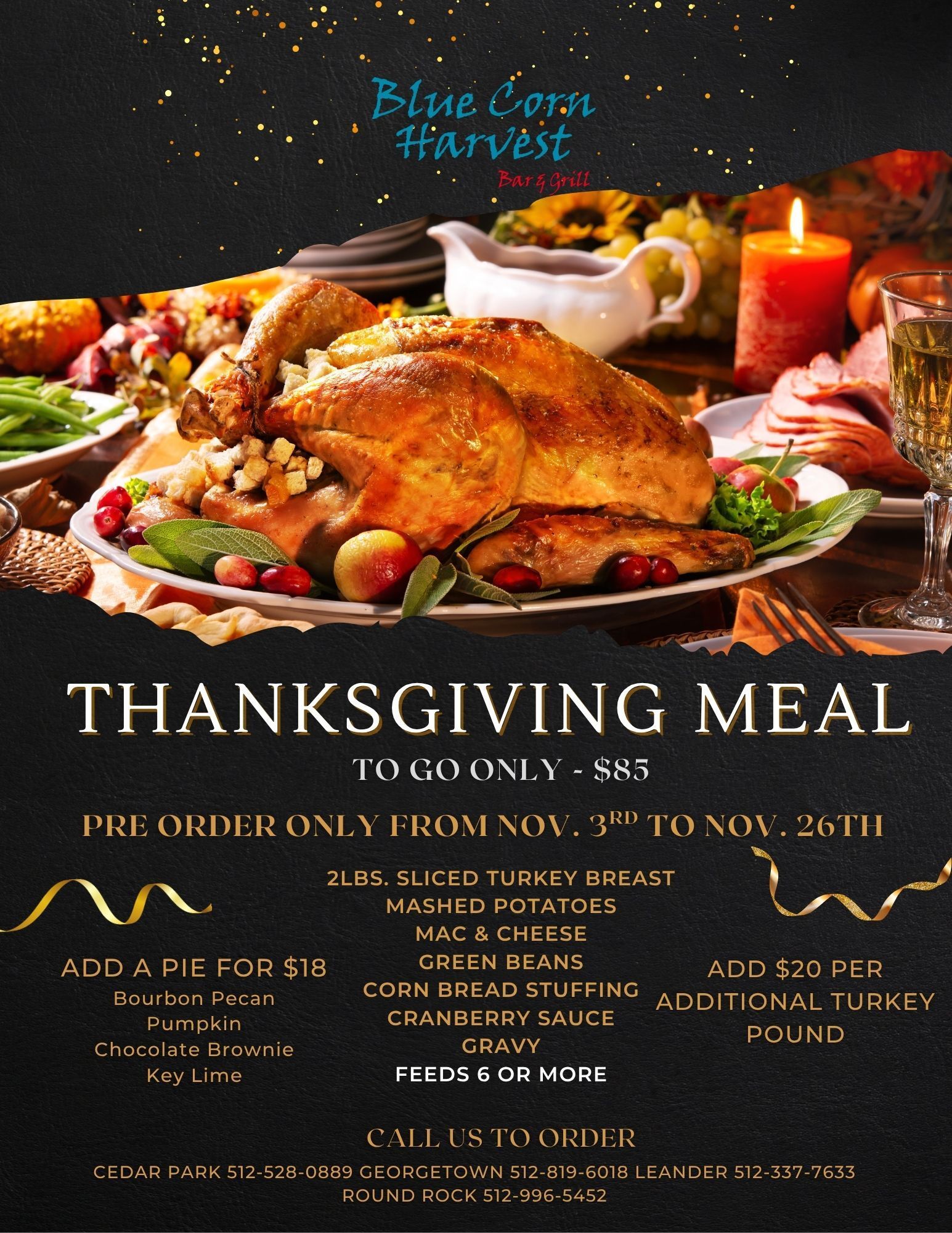 Not looking to cook? Blue Corn Harvest is serving up an easy, delicious way to celebrate Thanksgiving. Their Thanksgiving Bundle feeds six or more for just $85, complete with sliced turkey, mashed potatoes, mac and cheese, stuffing, and more. Add a pie for $18 and call it a day.