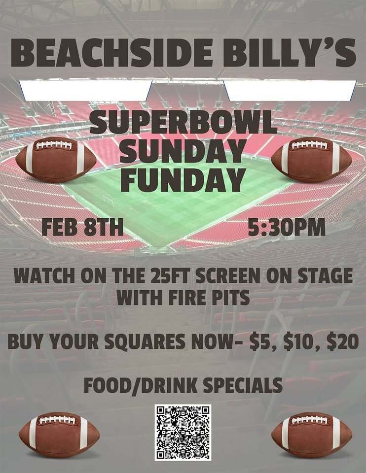 If you’re still figuring out where to watch the Super Bowl, Beachside Billy’s is going big. They’re setting up a massive 25-foot screen right on the stage, turning their lakefront space into an open-air game-day hangout you don’t get just anywhere.